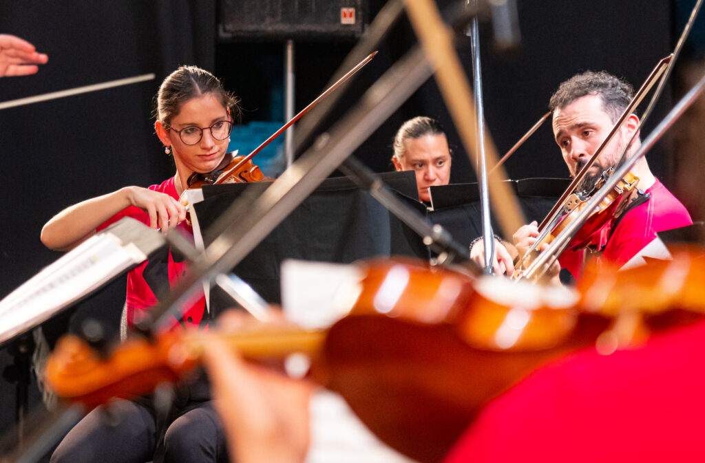 La propuesta presenta a una camerata de cuerdas (violín, viola, cello, contrabajo) de quince integrantes, que interpreta obras del repertorio clásico universal, popular y folclórico. La camerata está integrada por jóvenes mujeres y varones en paridad, con la dirección de Juan Barbero y la asistencia en dirección, arreglos y locución de Juan Candioti. El repertorio incluye las “Danzas Rumanas” de Bartók, “Brook green suite” de Holst, “Scenes from the Scottish Highlands” de Bantock, “Habanera” de Bizet, la “Tarantella Napoletana”, “Pequeña Serenata Nocturna” de Mozart, “Suite for Strings” de Aldemaro Romero y un set de piezas argentinas que incluye el tango “Sur”, el chamamé “El Tero”, la guarania “Che Negrito” y un pericón.